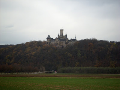 This weekend Jackie came to visit me from Berlin. After our unhealthy "junk" dinner on Friday night, we spent Saturday trekking out of Hannover to go see Schloß Marienburg (about 22 km outside of Hannover). We knew that after our train ride we would have a 3 km hike to the castle (which I knew was on the side of a mountain), but we didn't know that there wouldn't be a marked path from the road. It turned into a 5 km hike, but it was worth it in the end--the castle was really cool and it has an interesting history around it (ties into the royal House of Hanover in England).